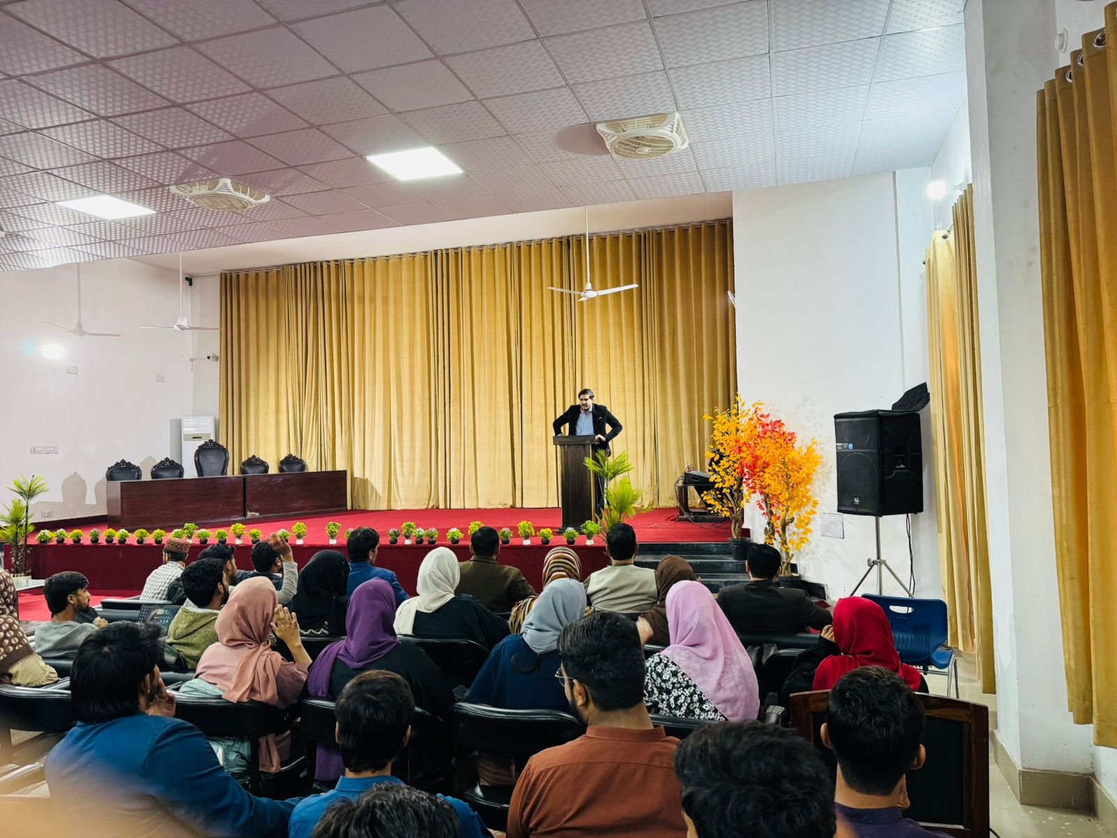 Following the meeting, an orientation session was held where Aun Shah addressed a large gathering of students. In his session, he introduced students to a range of overseas companies actively seeking fresh talent from Pakistan. He highlighted the growing demand for skilled youth abroad and guided students on how they can prepare themselves for global placements.